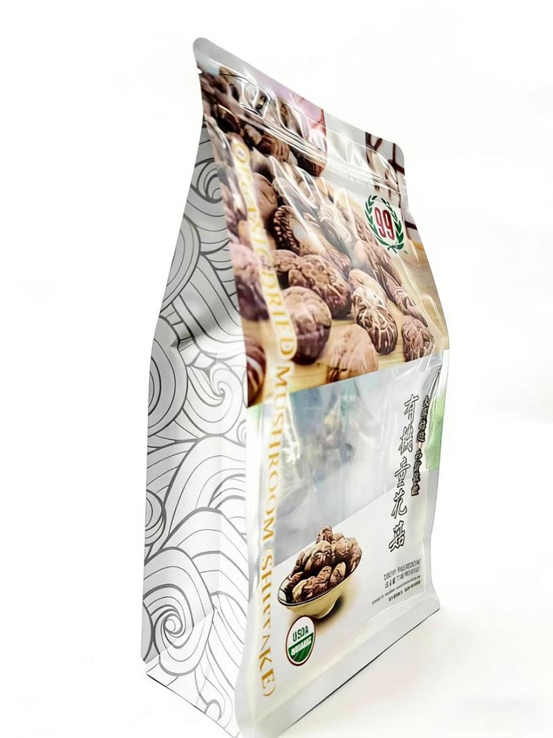 Η επιλογή της συσκευασίας επηρεάζει άμεσα την αποθήκευση και την παρουσίαση των αποξηραμένων φρούτων. Οι κύριοι τύποι συσκευασιών που διατίθενται στην αγορά περιλαμβάνουν σφράγιση τριών πλευρών, σφραγίδα τεσσάρων πλευρών, όρθιες θήκες και σακούλες οκτώ πλευρών. Μεταξύ αυτών, η σακούλα οκτώ πλευρών είναι η προτιμώμενη επιλογή. Σε σύγκριση με άλλους τύπους τσαντών, η σακούλα σφραγίδας οκτώ πλευρών διαθέτει οκτώ σφραγισμένες άκρες, επιτρέποντάς της να στέκεται όρθια με επίπεδο πάτο, καθιστώντας την ιδανική για εμφάνιση στα ράφια των καταστημάτων. Αυτός ο τύπος τσάντας παρέχει πέντε πλευρές για την επωνυμία και μπορεί να προσαρμοστεί με διάφορα γραφικά, καθιστώντας τον κατάλληλο τόσο για λιανική όσο και για ηλεκτρονικό εμπόριο.